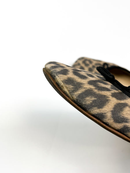 Ballerines à imprimé léopard A.P.C. avec détails noir.