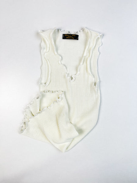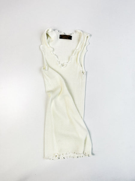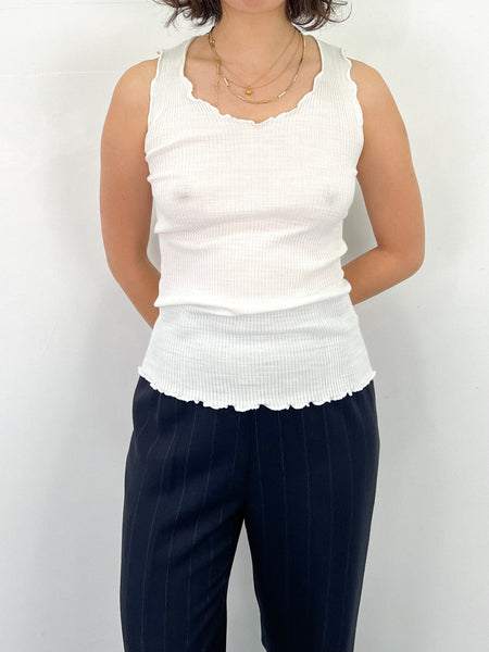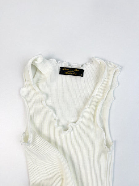 Top en laine et soie blanc vintage, tissu côtelé extensible,